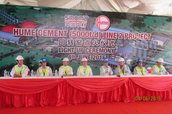 集團董事長劉志江,中材國際董事長、天津院及裝備集團黨委書記宋壽順,天津院及裝備集團董事長徐培濤,集團董事會秘書、總經(jīng)理助理傅金光;豐隆工業(yè)集團主席郭令山,HUME工業(yè)集團執(zhí)行董事柯天球,HUME水泥總經(jīng)理崔俊浩,馬來西亞南方鋼鐵執(zhí)行董事周忠隆出席了點火儀式。