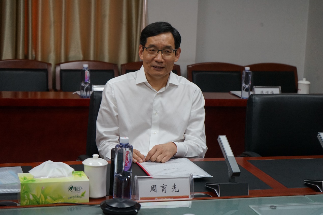 周育先一行聽取了中材礦山總經理郭正勇關于公司總體情況及發展思路的工作匯報及黨委書記劉峰山的補充匯報,充分肯定了中材礦山13年來在生產經營、科技創新、形象建設、黨建引領等方面取得的成績。